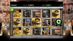Gladiator is a non-progressive, five-reel, twenty-five-pay line, a three-dimensional video slot game by BetSoft with a gladiator theme. It has a wild symbol, a scatter symbol, Gladiator free spins, and a maximum jackpot prize of $2,000.